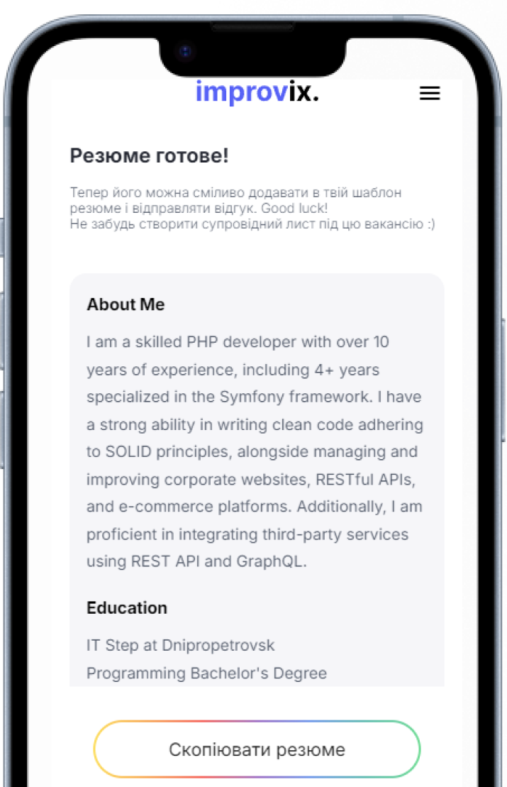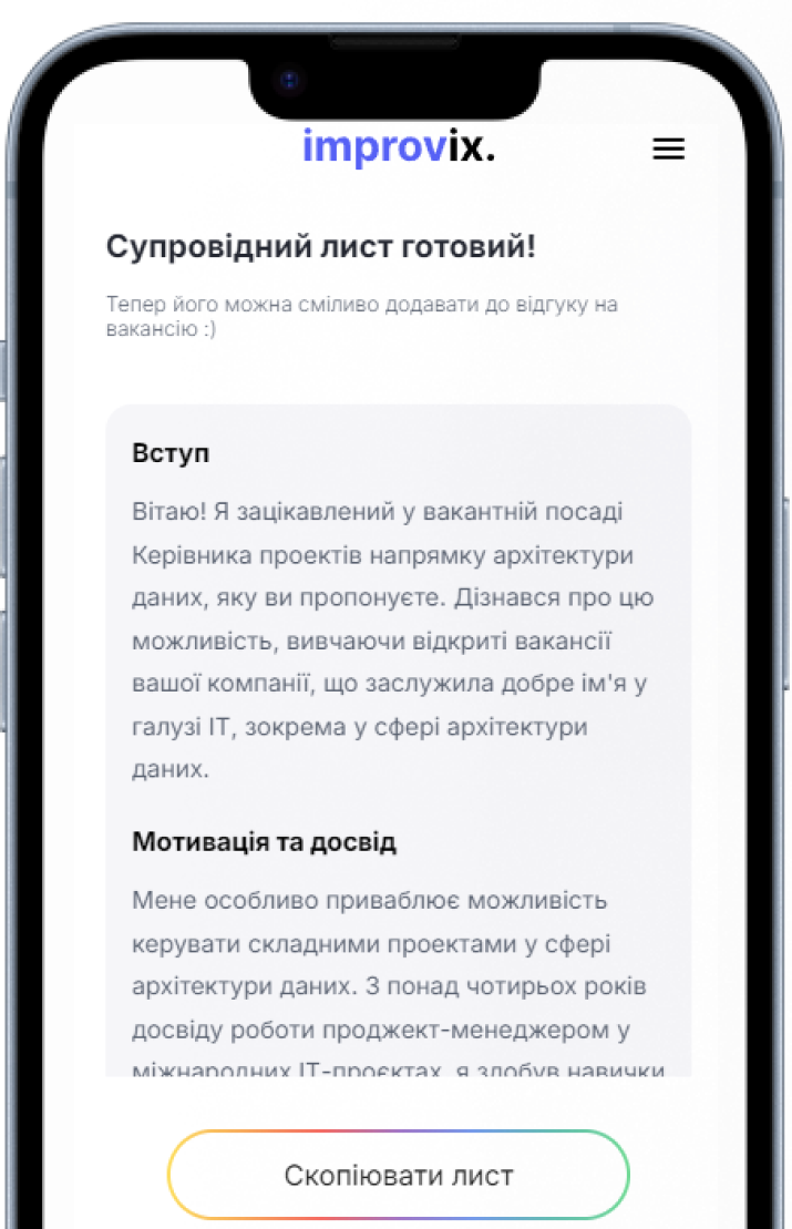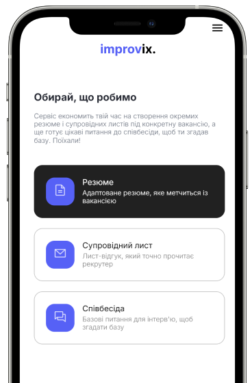 Залишай складнощі АІ-рекрутеру: ми напишемо резюме і супровідний лист під конкретну вакансію та підготуємо тебе до співбесіди